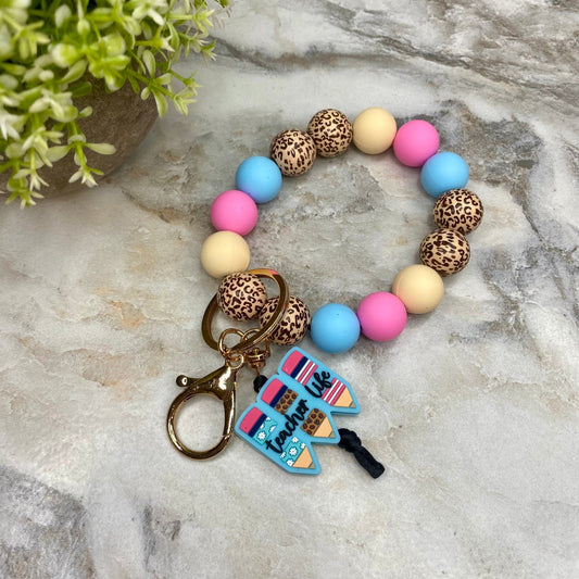 Silicone / Wood Bracelet Keychain - Teacher Life
