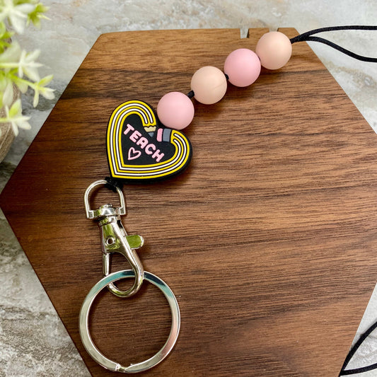 Break-Away Necklace Lanyard with Keychain Clasp - Silicone Bead - Teacher