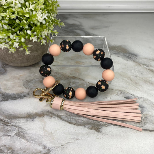Keychain - Silicone Bead - Teach, Pink Leopard