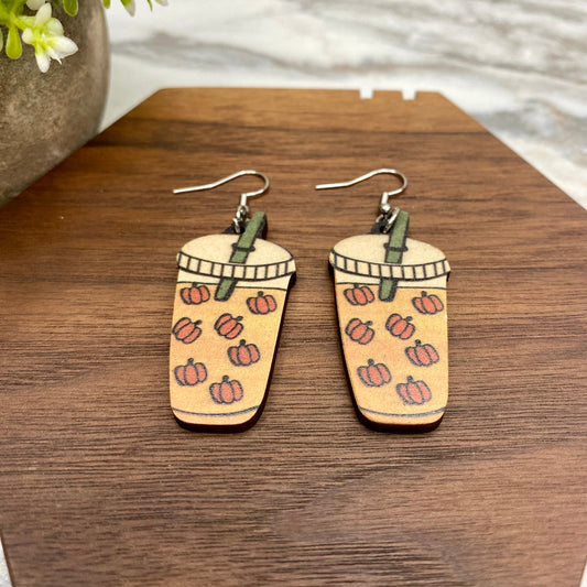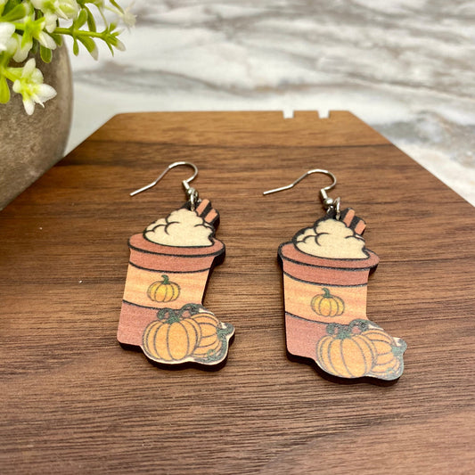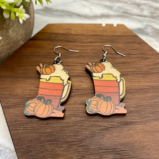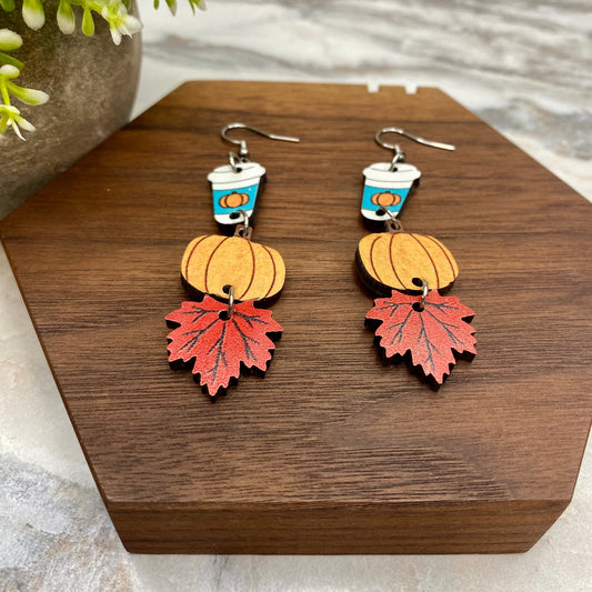 Wooden Dangle Earrings - Fall - Gnome Coffee