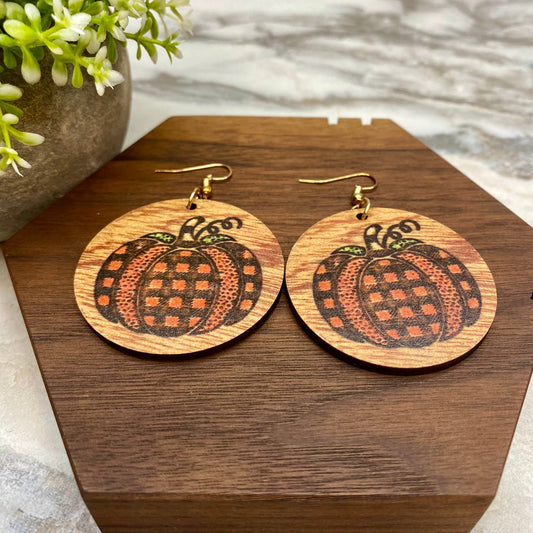 Wooden Dangle Earrings - Fall - Gnome Pumpkin