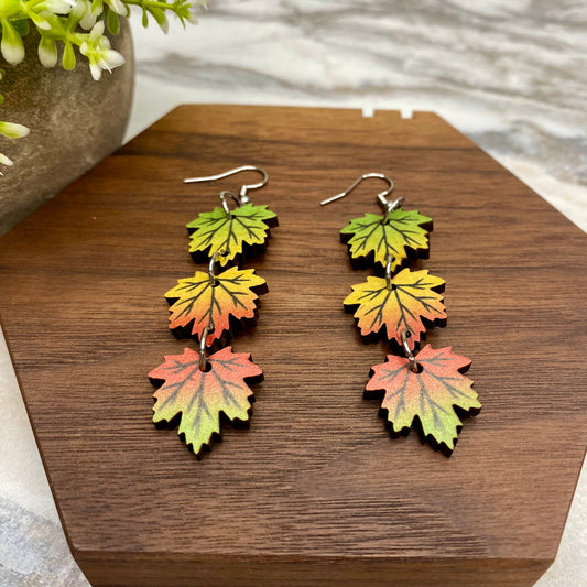 Wooden Dangle Earrings - Fall - Gnome Leaf