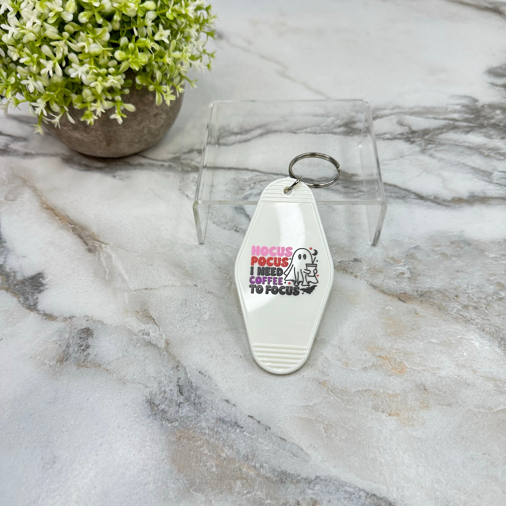 Acrylic keychain, stainless steel keychain, approx 3.5” charm plus keychain. Blank back.