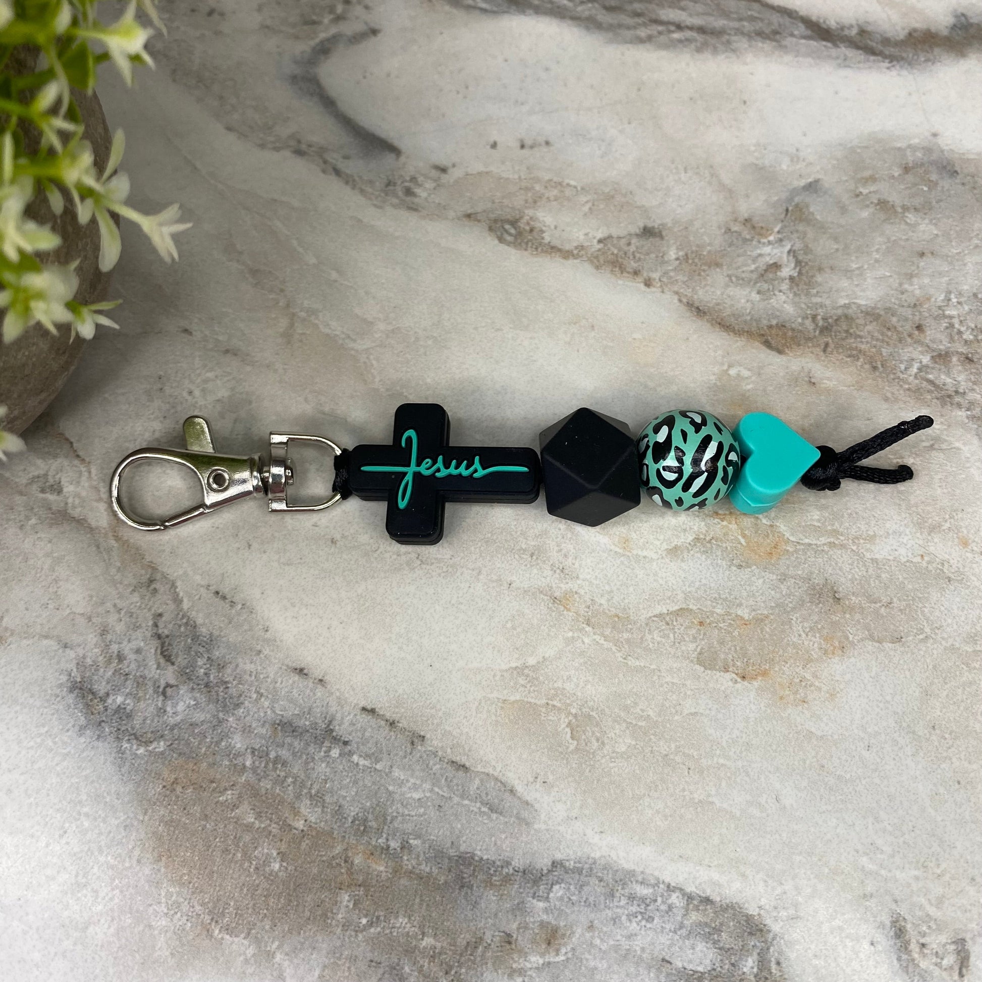 This adorable keychain holds so many cute beads and is approximately 3” long plus a silver clip.