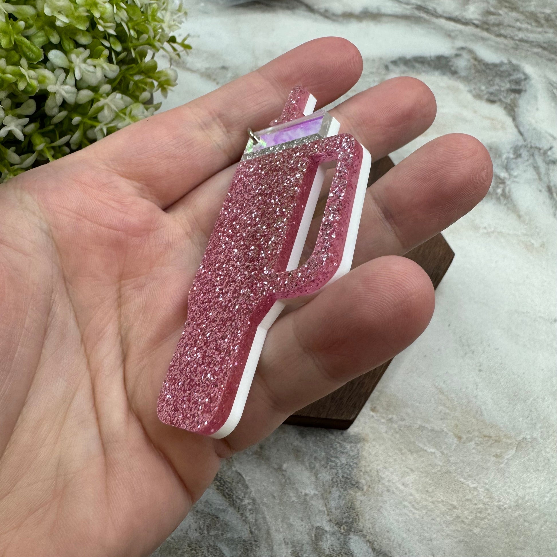 Acrylic keychain with tassel. Silver hardware. Approx 3” charm plus keychain. Blank back