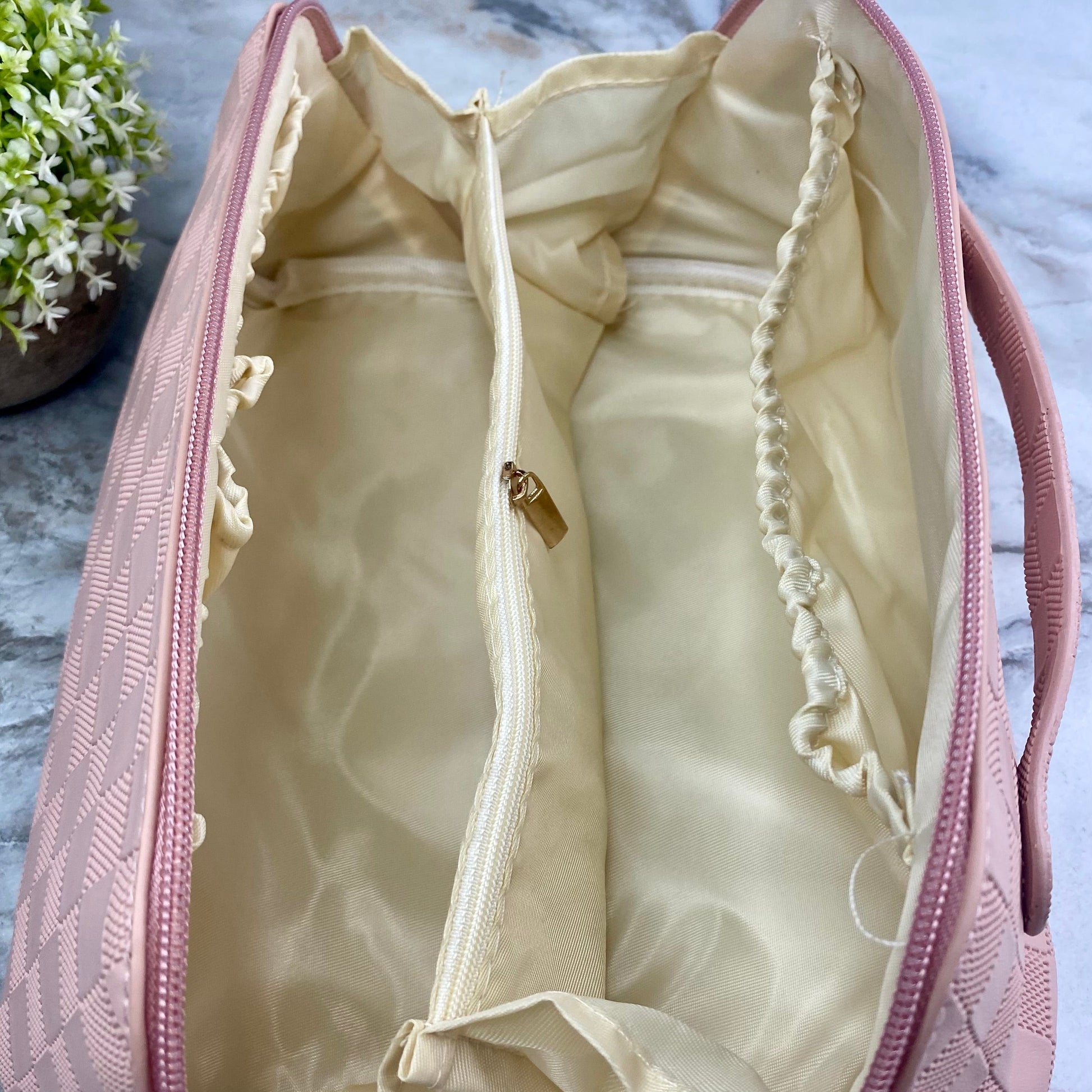 Oversized Lay Flat Cosmetic Bag - Checkered - Pink