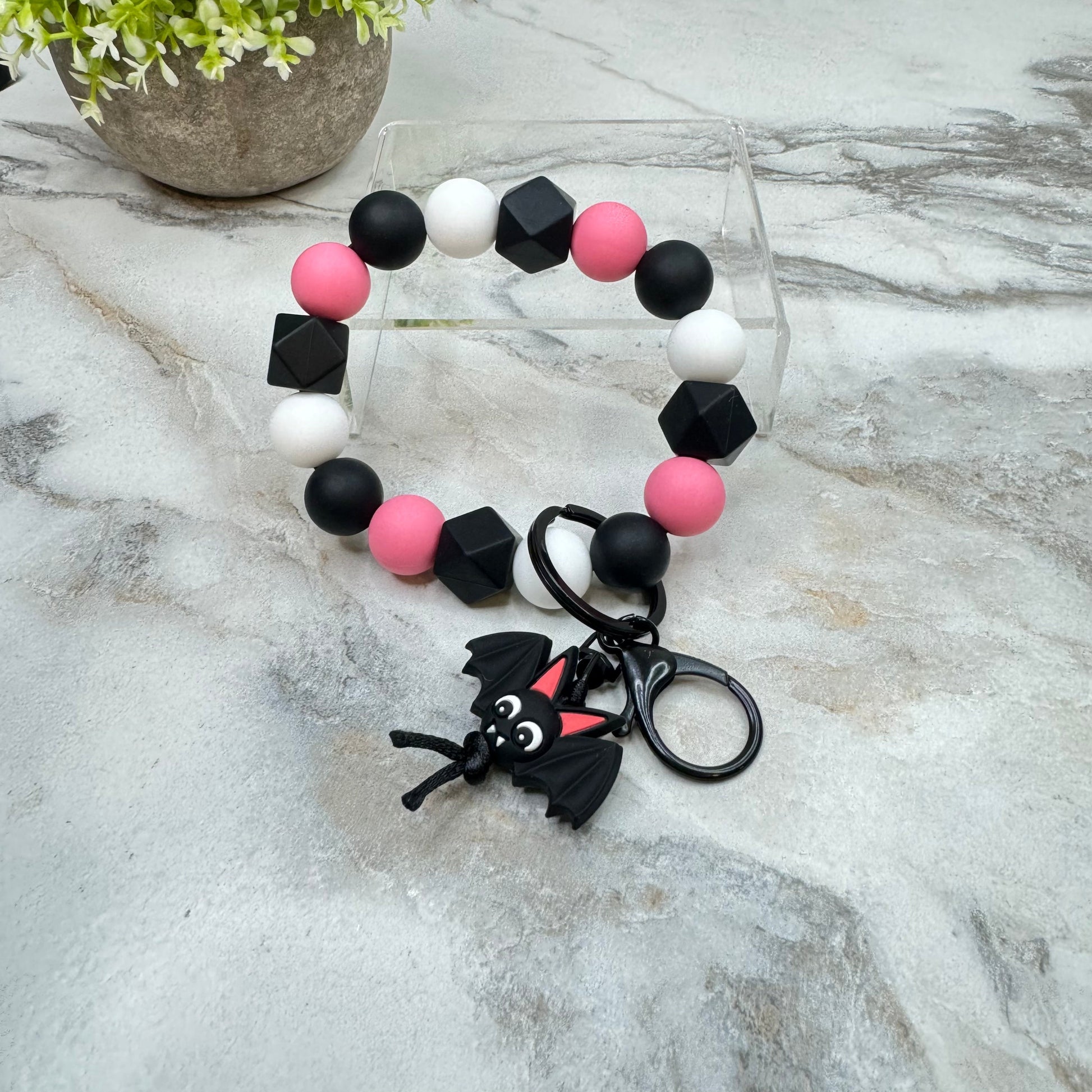 Silicone Bracelet Keychain - Halloween - Pink Bat