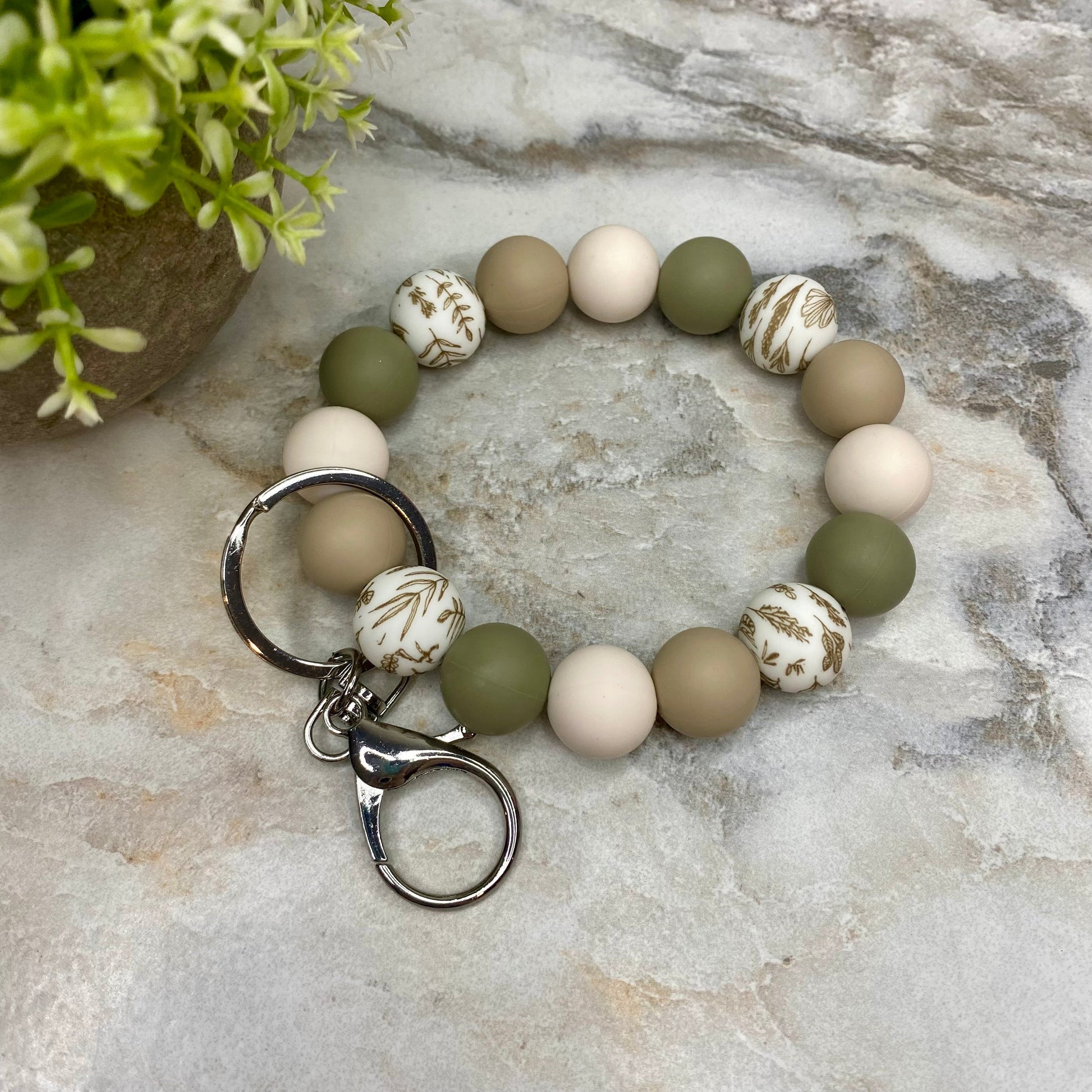 Silicone Bracelet Keychain - Olive Leaves