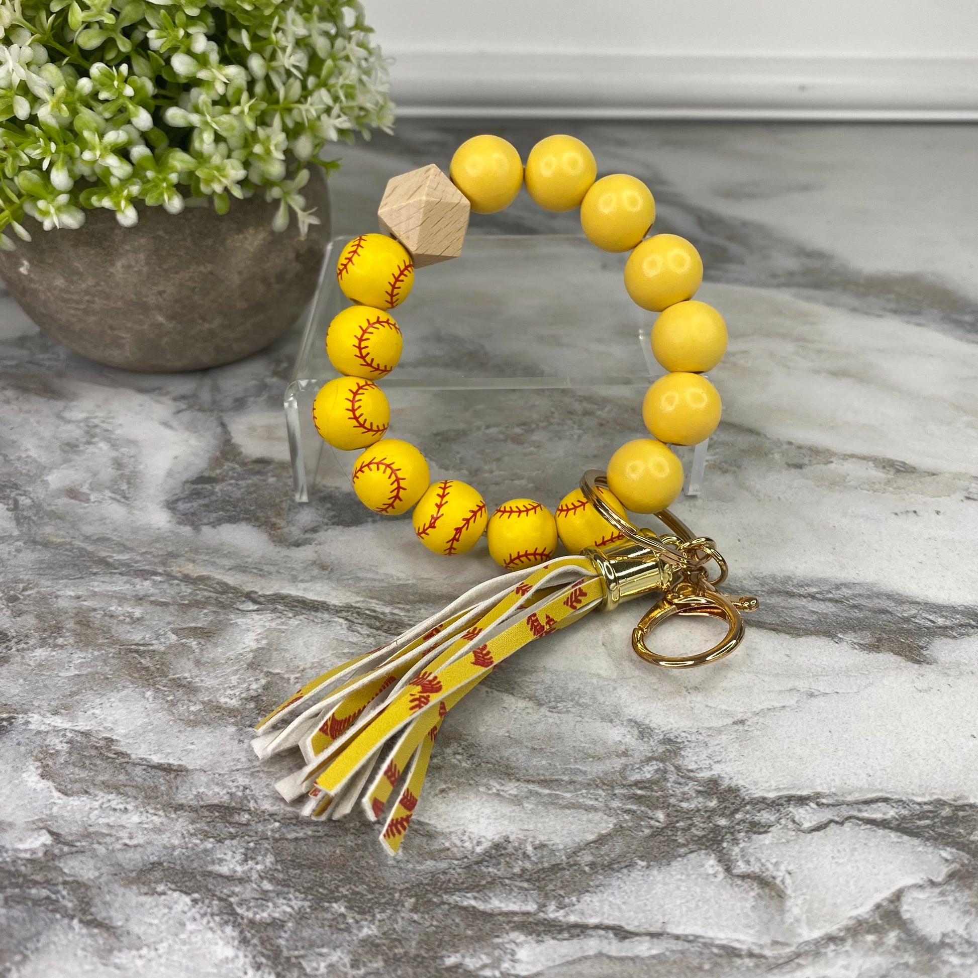 Wood Bracelet Keychain - Softball