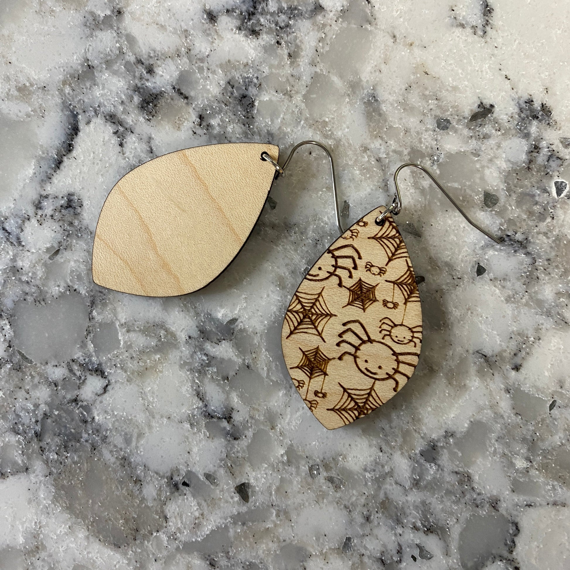 Wooden Specialty Drop Earrings - Halloween Spiders