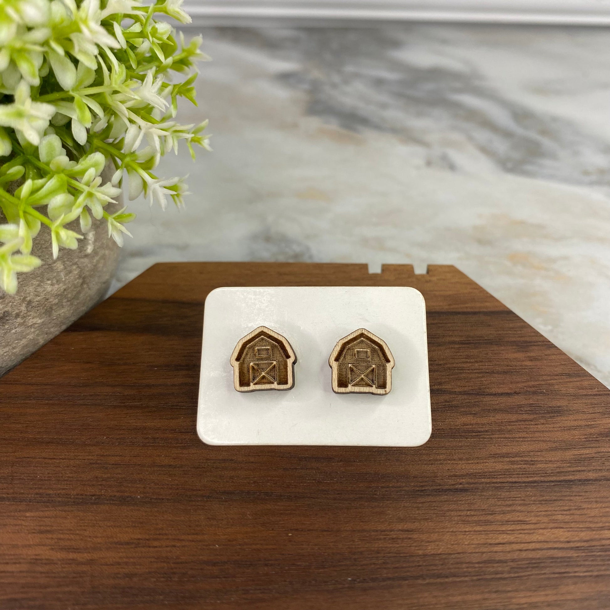Wooden Stud Earrings - Barn