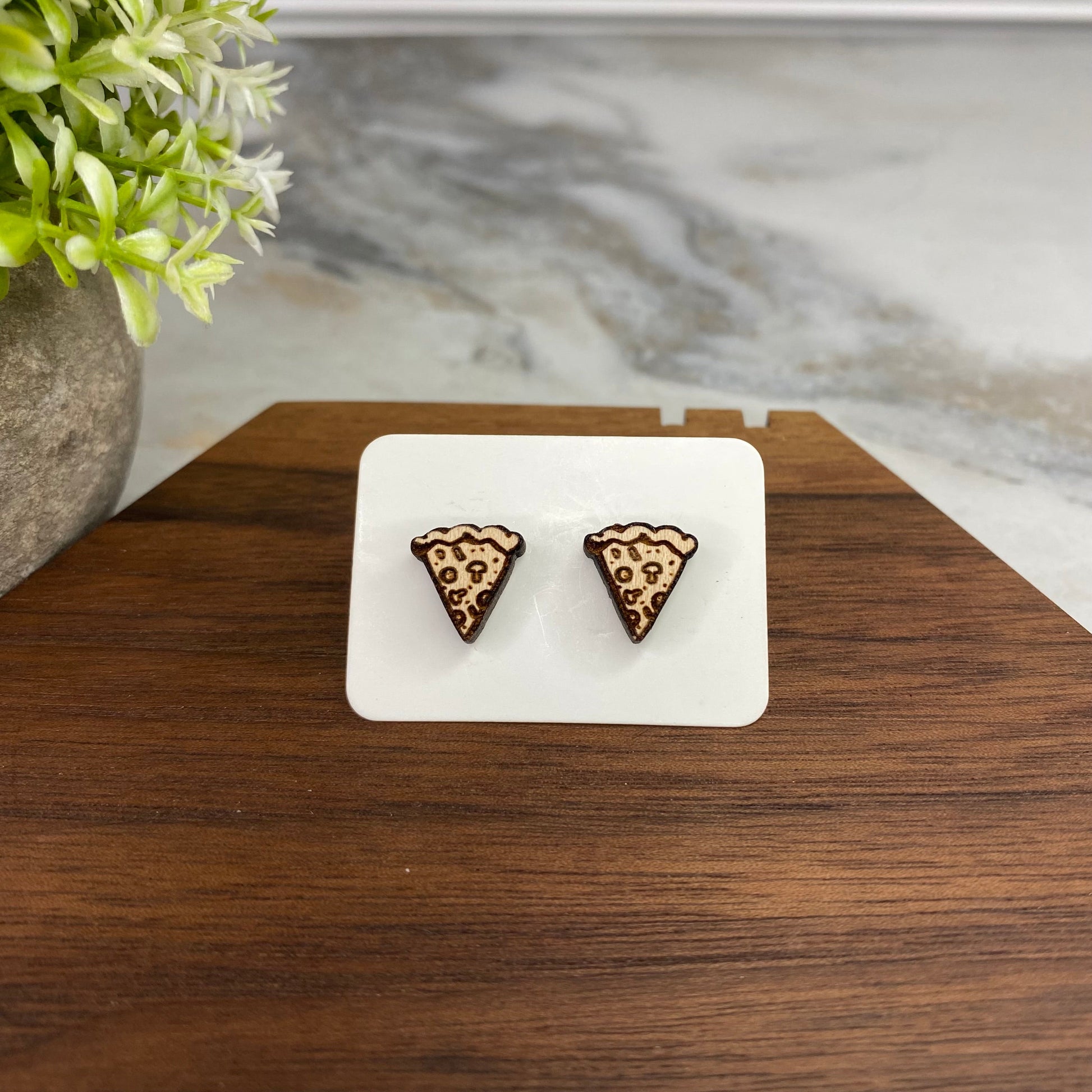 Wooden Stud Earrings - Pizza